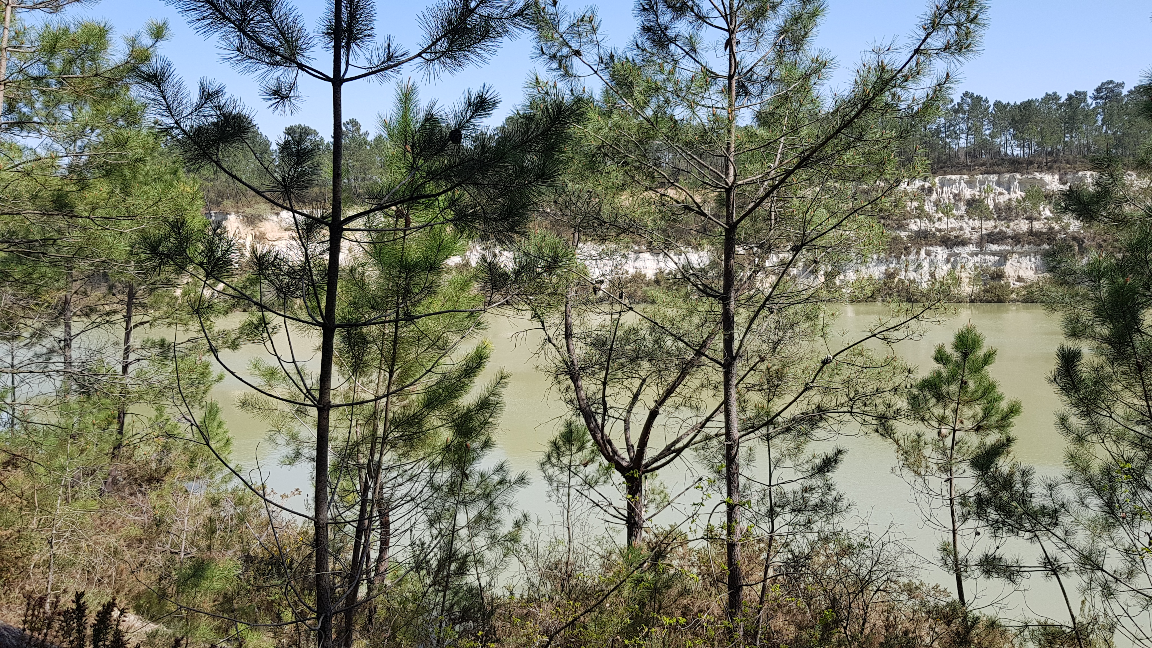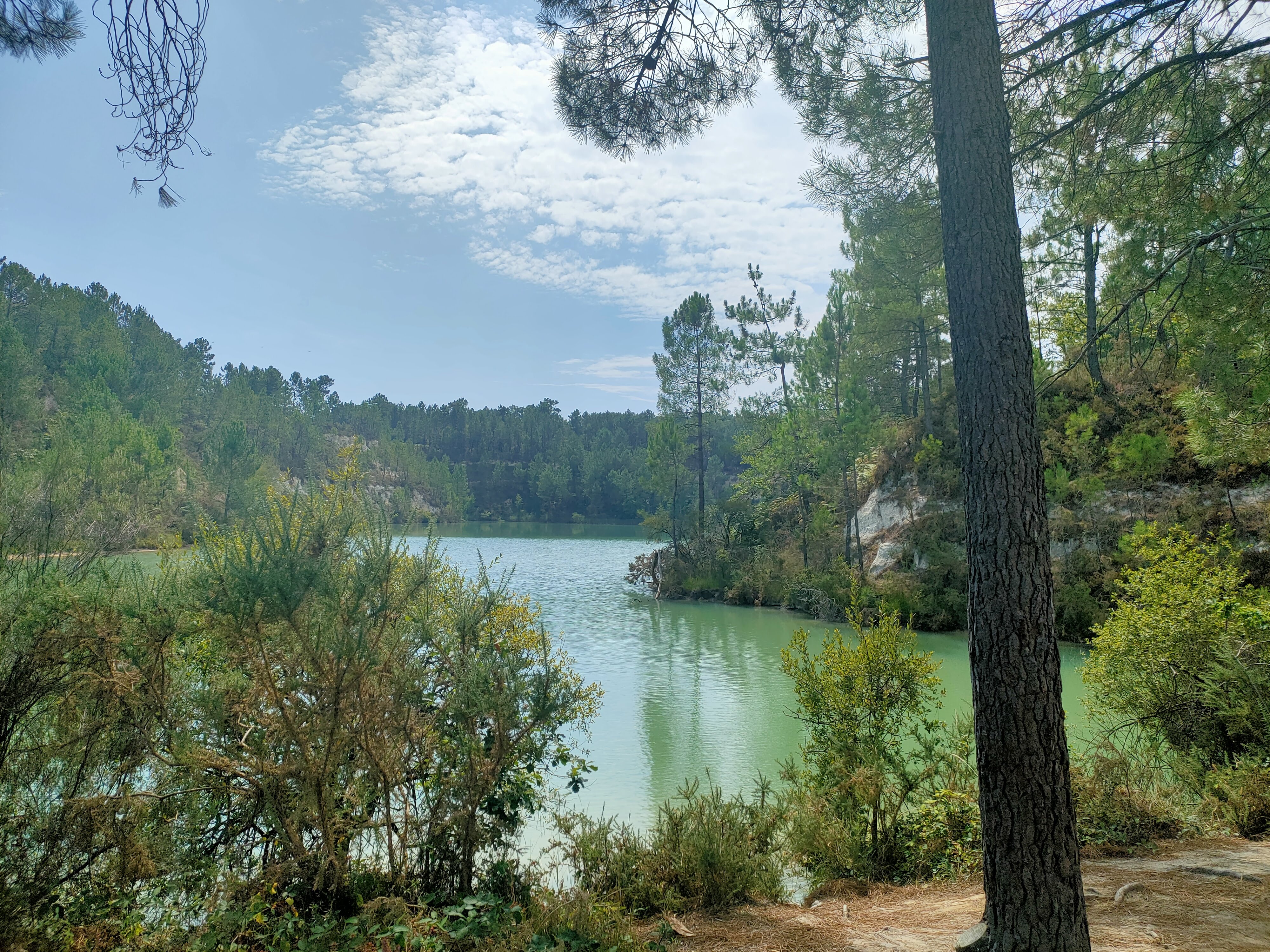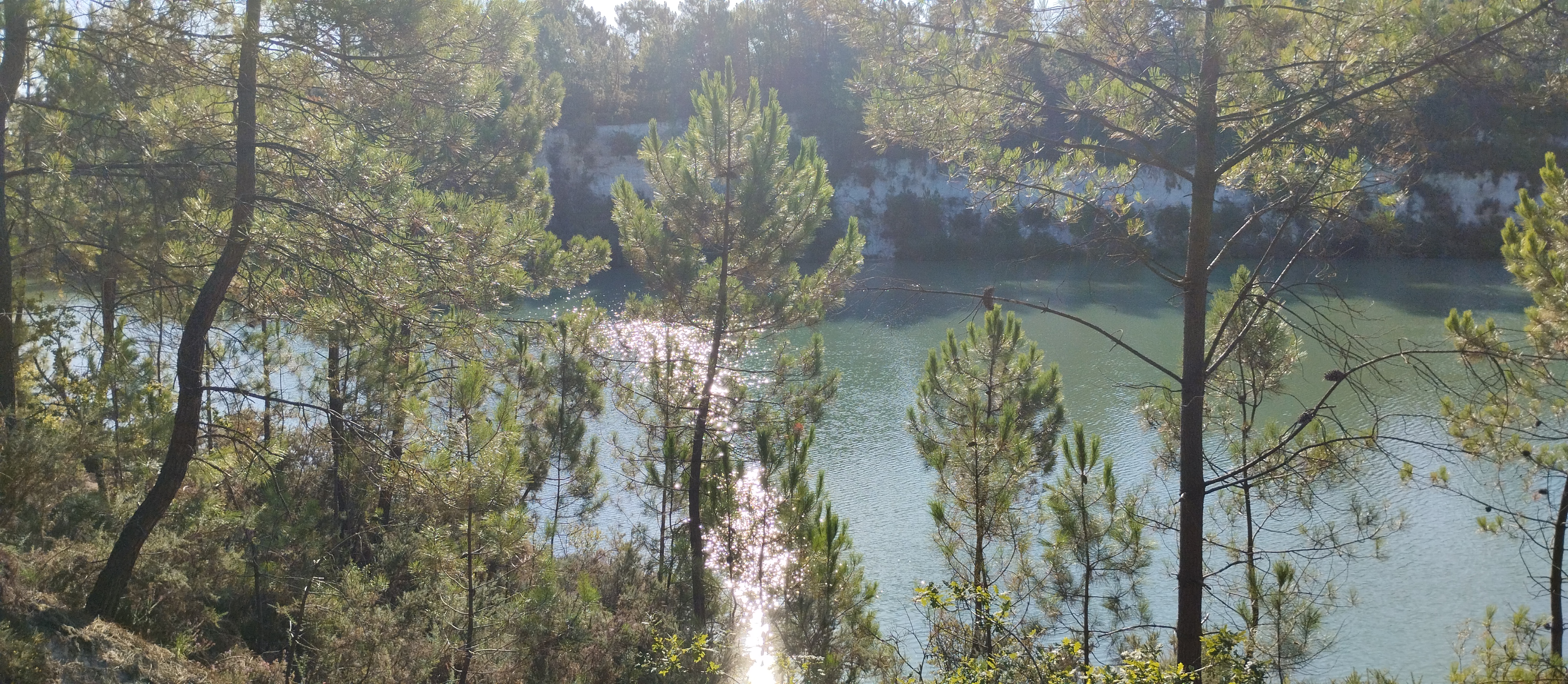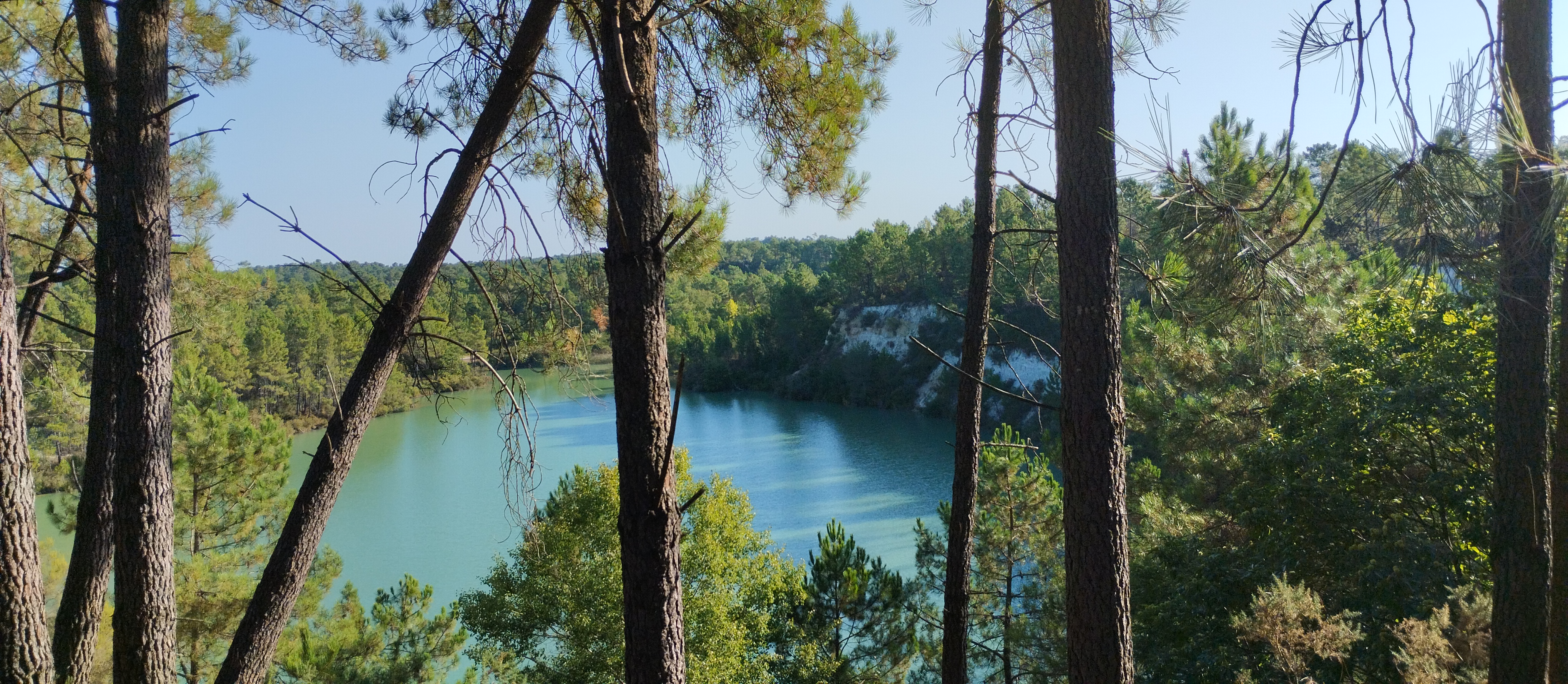 Insolite, les lacs ont des couleurs qui rappellent les mers du sud. Si on se souvient de la pub, on pourrait dire que c'est bleu OBAO. Des sentiers sont aménagés, par endroit il faut avoir le pied sûr. Quelques panneaux d'information un peu défréchis nous expliquent l'origine de ces carrières: l'exploitation du kaolin. Il y en a plusieurs dans la région notamment celles aprés Montguyon sur la route de Roche Chalais.