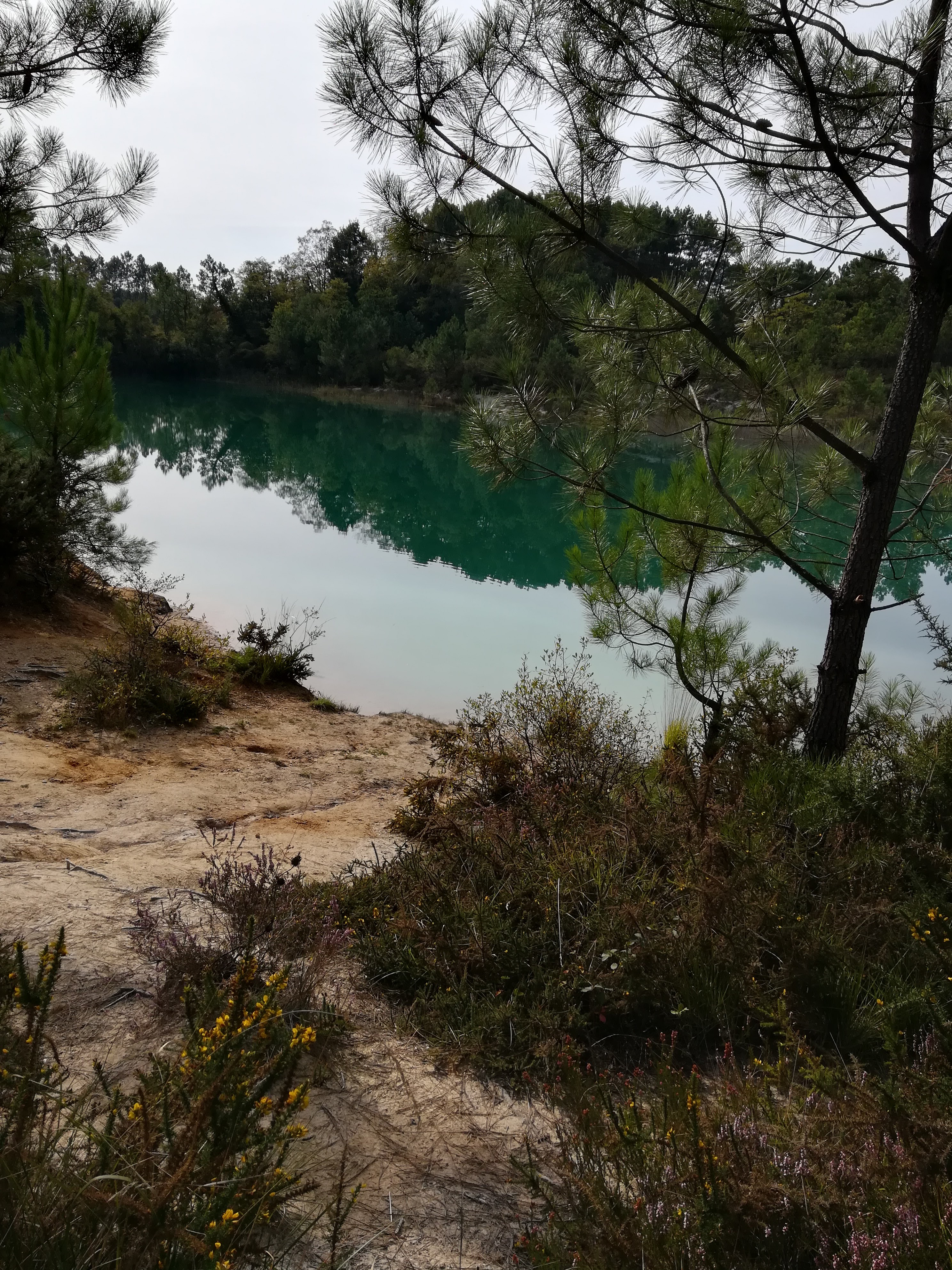 Vue en février par temps gris donc pas d’eau bleue. Les autres étangs sont moins accessibles et mal indiqués.